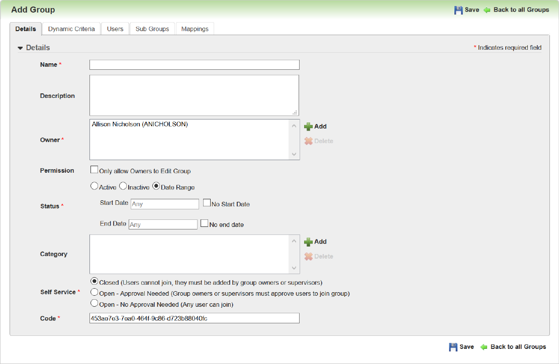 LearnCenter co-owners are implicitly owners of all Groups, but will not be listed in this list. |