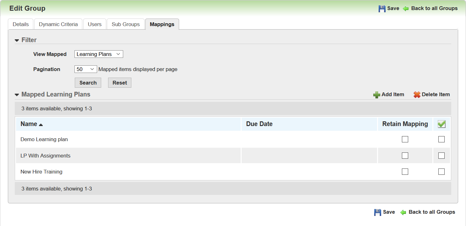 You can add new Groups. You can manually add Users to them, or set up dynamic criteria so that LearnCenter automatically adds Users or training to the Group.